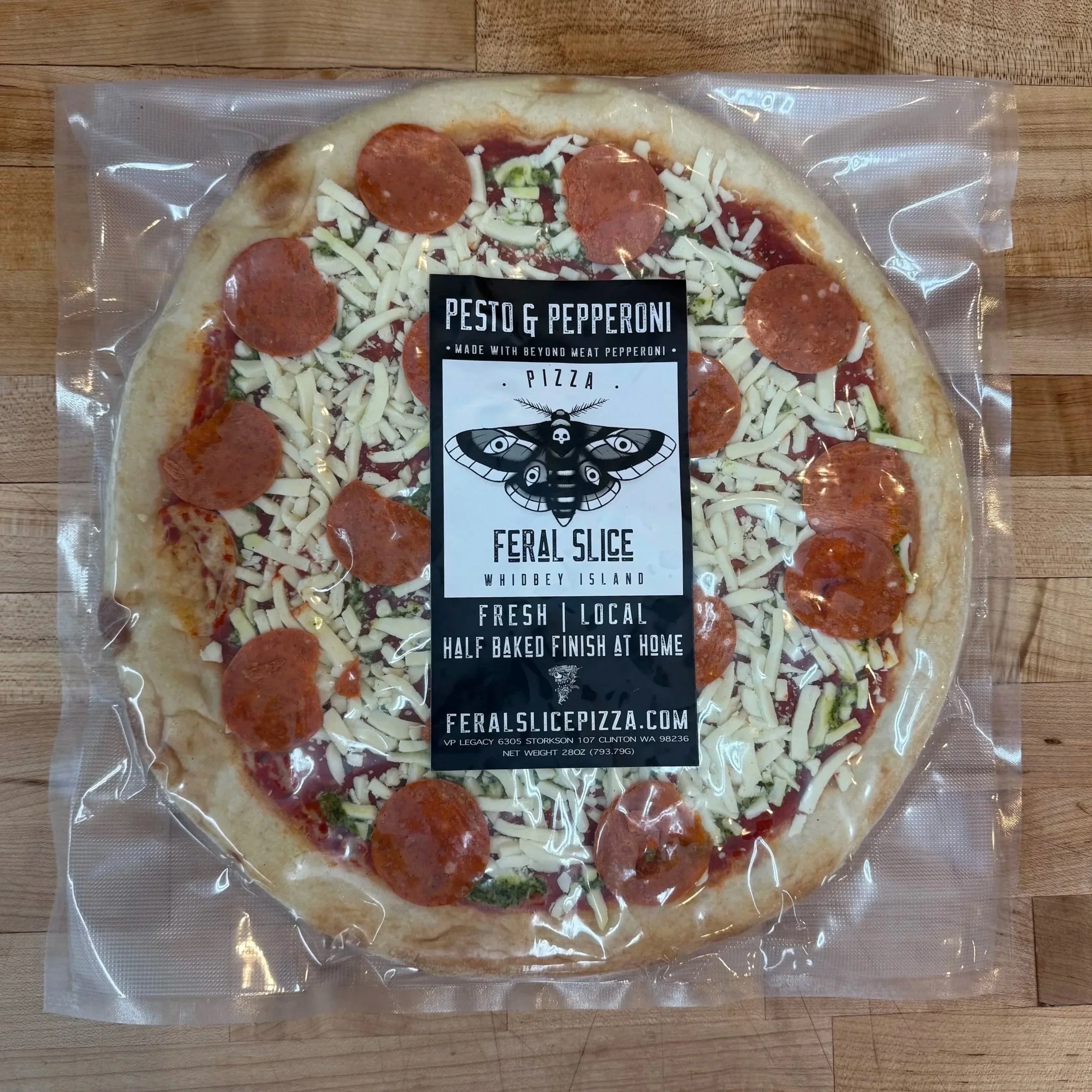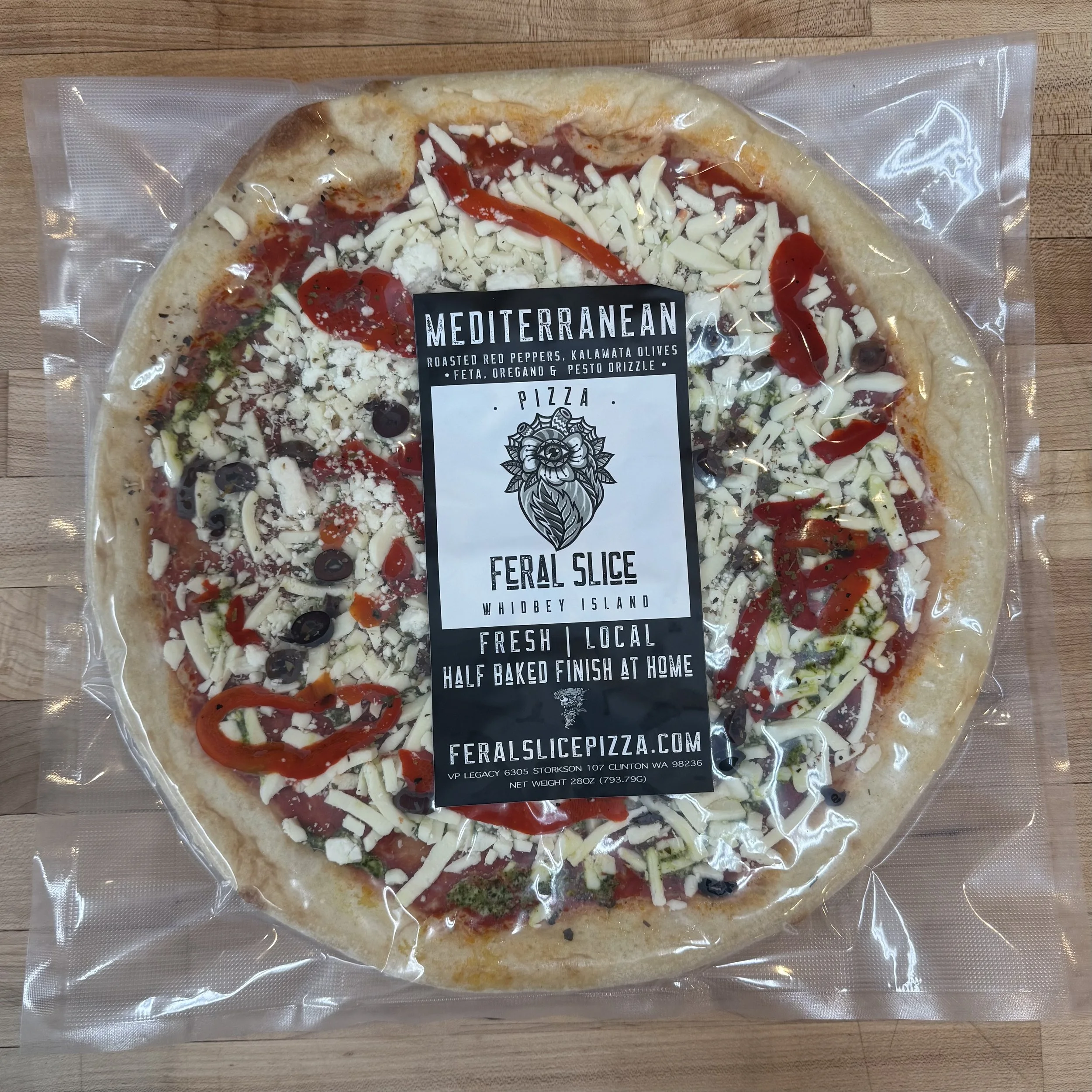 PIZZA FLAVORS14in & 10in Pesto & PepperoniTomato Sauce Base | Topped with: Mozzarella Cheese, Pesto drizzle & Beyond Pepperoni. MargheritaTomato Sauce Base | Topped with: Hand Sliced Smoked Mozzarella Cheese & Fresh Basil Leafs ClassicTomato Sauce Base | Topped with: Mozzarella, Mushrooms, White Onion, Black Olive & alternative “Sausage”. MediterraneanTomato Sauce Base | Topped with: Mozzarella, Roasted Red Peppers, Kalamata Olives, Feta, Pesto drizzle & a sprinkle of Oregano. BBQ RanchBBQ & Ranch Base | Topped with: Mozzarella Pineapple, Jalapeño, Red Onion & a sprinkle of Cilantro Lemon RicottaOlive Oil Garlic Base | Topped with: Light Mozzarella Whipped Lemon Ricotta, Lemon Zest, Parsley & Basil